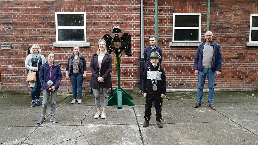 Am vergangenen Wochenende feierte der Spielmannszug Sassenberg sein vereinseigenes Schützenfest auf dem Kartoffelhof Fartmann in Vohren. In diesem Jahr war alles etwas anders, so erlegte man nicht den hölzernen Vogel mit dem Gewehr, sondern versuchte den Vogel mit Tennisbällen zu Fall zu bringen. Mika Schöne der in den vergangenen Jahren an der Stange immer gescheitert ist, hat es dieses Jahr geschafft und ist nun der Vereinskönig. Den Vogel der Damen erlegte Jasmin Lakenbrink. Kinderschützenkönigin wurde Lea Gausepohl. Da man nicht immer ein echtes Königspaar zugegen hat, übernahmen spontan Irmgard und Thomas Stratmann, das amtierende Königspaar des Bürgerschützenvereins die Krönung der neuen Majestäten.