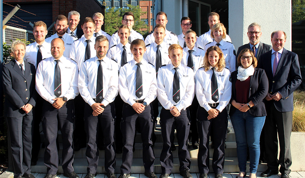 Am Montag, 02.09.2019, begrüßte Landrat Dr. Olaf Gericke 19 neue Mitarbeiterinnen und Mitarbeiter bei der Kreispolizeibehörde Warendorf. Die Mehrzahl der „Neuen“ wurden nach erfolgreichem Abschluss des Fachhochschulstudiums direkt in den Kreis Warendorf versetzt. Ihnen nahm der Landrat zuvor den Diensteid ab.