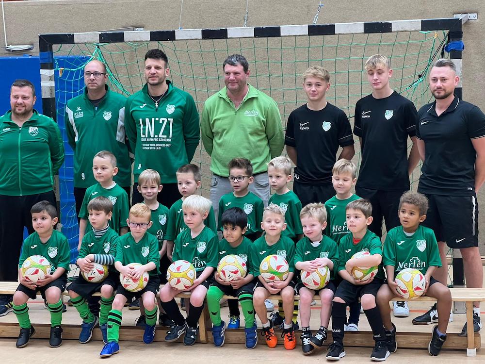 Voller Stolz präsentierten die jüngsten Nachwuchsfußballer des VfL Sassenberg ihr neues Outfit für das Gruppenfoto. Geschäftsführer Markus Merten vom Merten Garten – & Landschaftsbau GmbH übergab am Trainingsnachmittag den neuen Trikotsatz für die U 6 – Kinder um ihren Trainer Dawid Pietruszewski. Dafür möchte sich die Mannschaft noch einmal ganz herzlich bei Markus Merten bedanken. Das Mannschaftsfoto zeigt die Mannschaft mit ihren Trainerstab und Geschäftsführer Markus Merten.