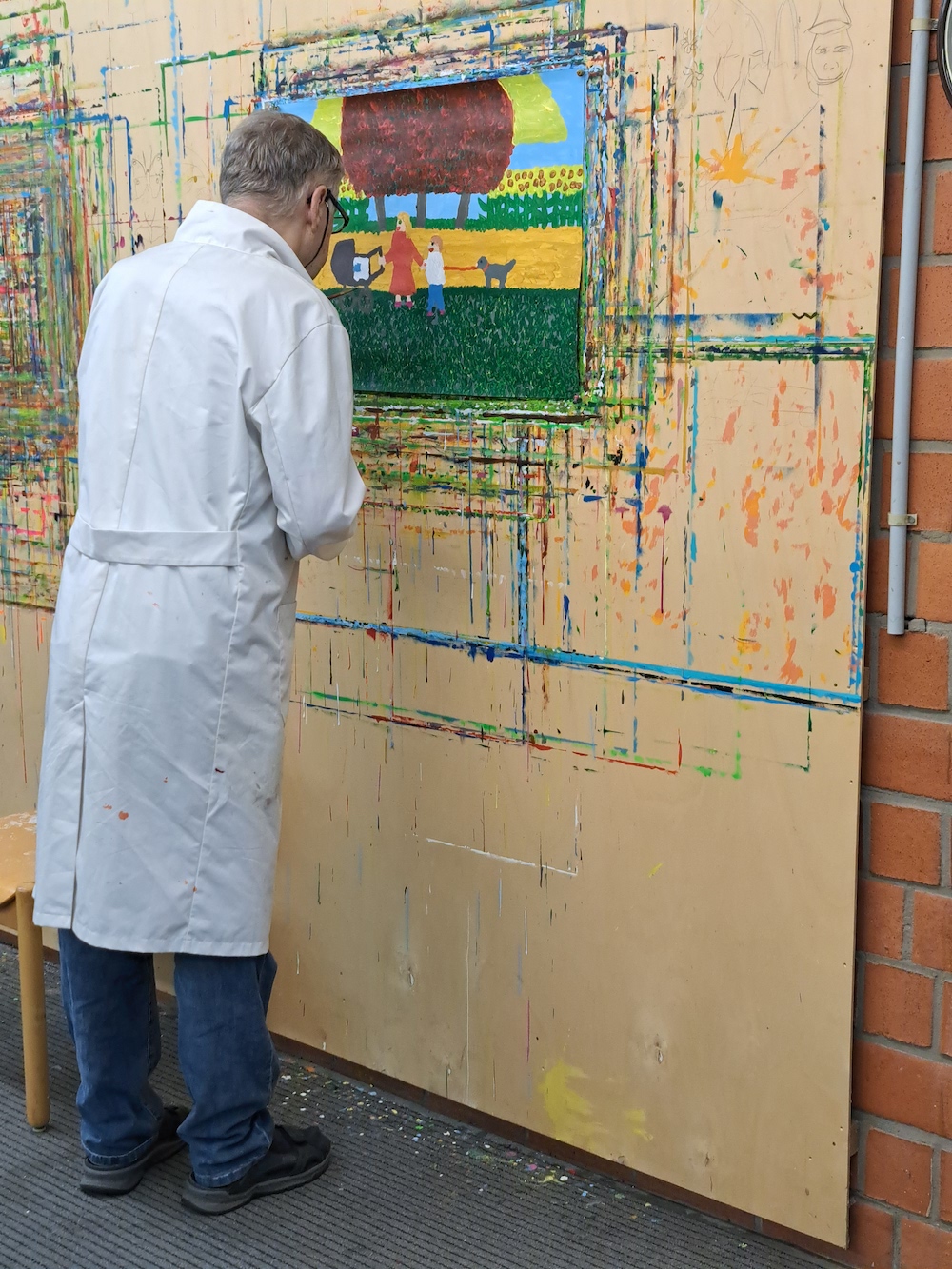 „Diese Arbeit macht mir ungeheuer viel Spaß“, erzählt Luzia-Maria Derks unterwegs. Am besten gefalle ihr, „dass alle ihren ganz eigenen Stil haben.“ Die Münsteranerin teilt die These von Joseph Beuys, wonach jeder Mensch ein Künstler ist. „Ich bin beim Malen nur dabei und stelle das Material zur Verfügung“, sagt sie.