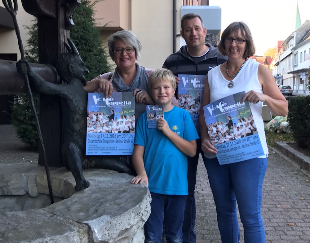 Rechtzeitig zum Mettwurstmarkt, dem noch folgenden Freckenhorster Herbst und Fettmarkt in Warendorf wurden die Plakate für das nächste Konzert schon gedruckt. Der Popchor VoiceCappella wird sich Anfang November wieder ein Wochenende Zeit nehmen und sein Probenwochenende abhalten. Das Konzert in Ennigerloh ist dann nicht mehr weit weg. Am 17. November treten die Sängerinnen und Sänger in der Aula der Gesamtschule um 20.00 Uhr auf. „Die Probentage sind immer sehr gut geeignet, um die neu einstudierten Songs intensiv zu proben und das bekannte Repertoire wieder nach vorne zu holen und an Feinheiten zu feilen“, sagt Thomas Michaelis, Mitglied der bekannten A-Cappella- Formation 6 Zylinder, der Voice Cappella nun schon seit über 10 Jahren als Chorleiter begleitet.