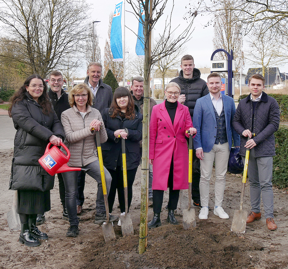 Als Zeichen der Zuversicht und im Sinne der Nachhaltigkeit wurde vor der Bank in Ennigerloh ein weiterer Jahrgangsbaum gepflanzt. „Mit dem Pflanzen dieses jungen Baumes wollen wir den Beginn Ihrer beruflichen Karriere verdeutlichen“, sagte Ulrich Webers, Bereichsleiter Personal. „Möge er, wie Ihre Laufbahn, prächtig wachsen und gedeihen.“ Damit unterstützen die jungen Bankkaufleute die Klimainitiative der Volksbank, die auch in diesem Jahr wieder für jedes neue Mitglied einen Setzling spendet. Als Zeichen ihrer regionalen Verbundenheit wurden so allein im letzten Jahr 3.000 Bäume gepflanzt.