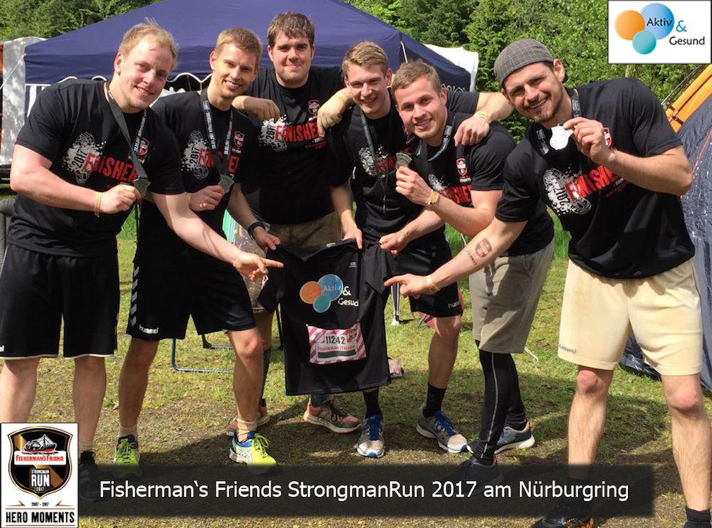 GO BiG – unter diesem Motto reisten wir sechs Warendorfer am 20. Mai 2017 voller Vorfreude zum Nürburgring in die Eifel. Und zwar nicht, um Autos beim Motorsport zu verfolgen, sondern um uns dem diesjährigen Fisherman’s Friend StrongmanRun zu stellen. Zusammen mit über 10.000 Startern erwarteten uns in der 12 km-Distanz 20 verschiedene Hindernisse, die es geschickt zu überwinden galt: angefangen von Strohballen und Reifenstapel über Kletternetze und Steilwände bis hin zu eiskalten Schlammbädern. Mit viel Spaß, sportlichem Ehrgeiz und vor allem durch einen großartigen Teamgeist ist es uns gelungen, all diese Herausforderungen zu meistern und nach 01:32:41 Stunden gemeinsam über die Ziellinie zu laufen. Neben erfolgreichen Einzelplatzierungen (239. – 243.) erreichten wir sogar den 19. Platz in der Teamwertung, wodurch wirklich alle Erwartungen übertroffen wurden. Dank dieses sportlichen Erfolges, dem Nürburgring-Spirit und nicht zuletzt einer beeindruckenden Atmosphäre unter den Läufern sowie Zuschauern konnte jeder an diesem Wochenende seinen ganz persönlichen „Hero Moment“ erleben.