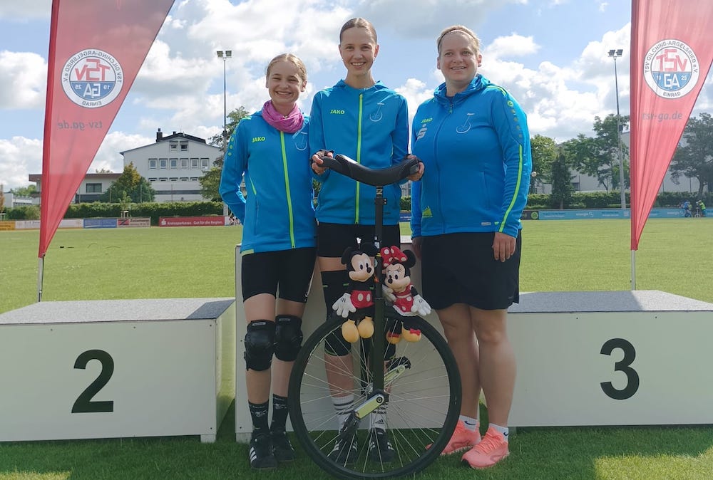 Die Einradgemeinschaft Münsterland war mit drei Athletinnen vertreten, die trotz der Hitze starke Leistungen zeigten. Besonders erfolgreich war Marisa Löckmann (14), die in der Altersklasse U15 gleich mehrfach auf dem Podest stand. Am ersten Wettkampftag gewann sie das 800-Meter-Rennen ihrer Altersklasse und qualifizierte sich damit für das Finale der sechs schnellsten Frauen aller Altersklassen, in dem sie einen hervorragenden vierten Platz belegte. Hinzu kamen zweite Plätze über 100 Meter, im Radlauf- und im Einbein-Rennen sowie ein dritter Platz im IUF-Slalom.