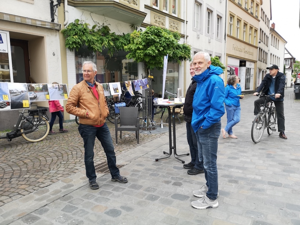 Die Aktiven des Runden Tisch Radverkehr in Warendorf haben an einem Infotisch auf dem Marktplatz über ihre Arbeit informiert und Passanten gefragt: „Was muss passieren, damit Sie in Warendorf mehr Rad fahren?“ Außerdem konnten die zahlreichen interessierten Menschen in einem kleinen Quiz ihre Ortskenntnis beweisen.