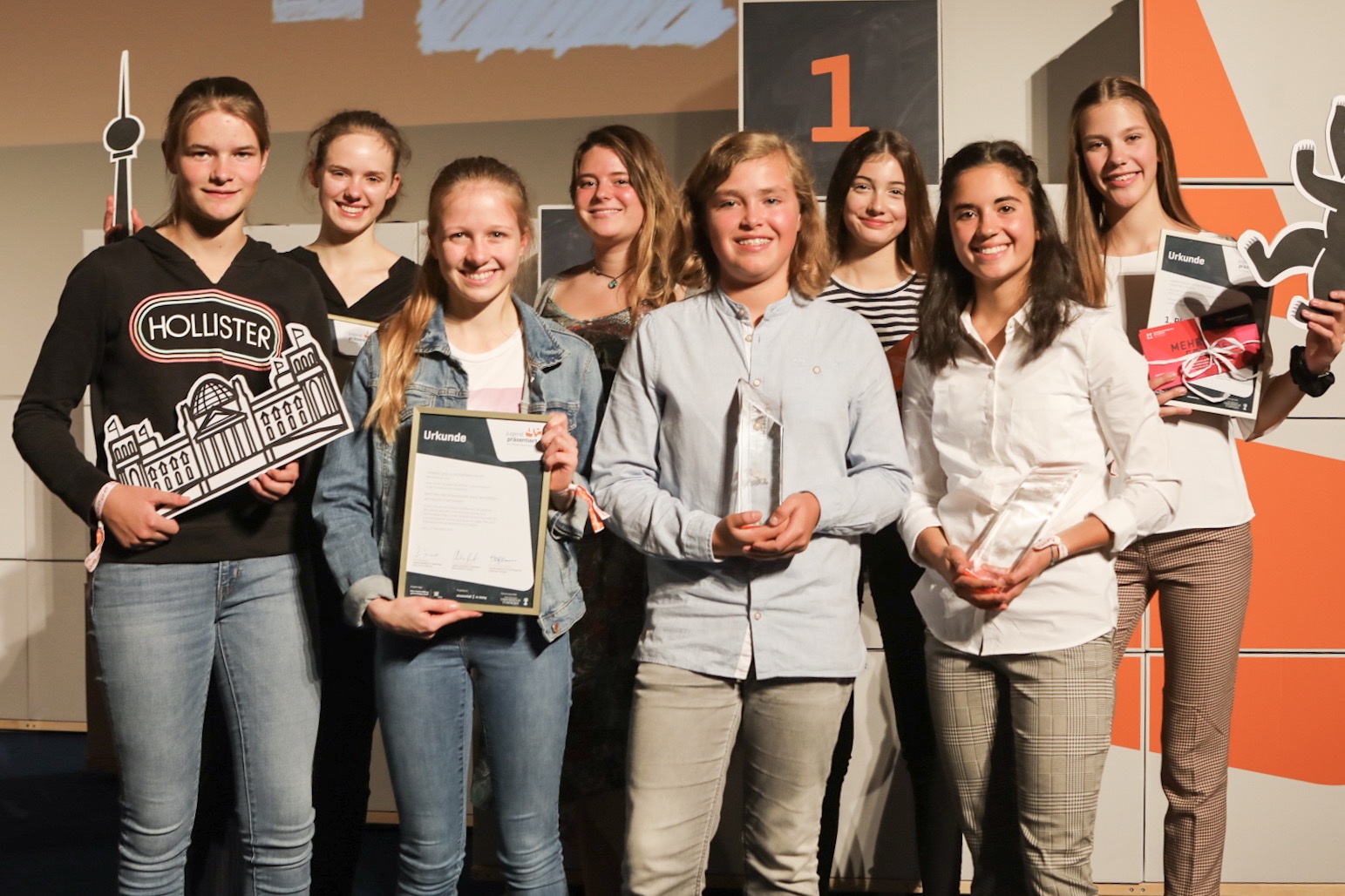 Mit ihrer Präsentation „Vertical Farming – die optimale Revolution der Landwirtschaft?“ überzeugten Jasmin Kotzsch (16) und Cara Marrone (16) vom Ratsgymnasium Wolfsburg beim Finale des Präsentationswettbewerbs Jugend präsentiert die Fachjury und sicherten sich den Bundessieg 2019. Vor rund 450 Zuschauerinnen und Zuschauern präsentierten sie gemeinsam mit acht Finalistinnen und Finalisten, die alle mit ihren Präsentationen zum Thema „Optimal“ um den Bundessieg antraten. Auch Laura Benicke (13) vom Gymnasium Miesbach begeisterte die Jury mit ihrer Präsentation zur Frage „Wie lange ist unsere Erde noch optimal?“ und belegte den zweiten Platz. Michel Haffner (14) vom Gymnasium Laurentianum Warendorf mit „Wie ist der optimale Weg einzuschlafen?“ sicherte sich Platz drei. Alle Finalistinnen und Finalisten dürfen sich über eine Städtereise nach Berlin freuen, die ein umfassendes Programm aus Wissenschaft, Kultur und Medien für sie bereit hält. Auch das Publikum durfte abstimmen und seine favorisierte Präsentation küren: Siegerin der Herzen wurde Laura Benicke und darf sich damit, neben dem zweiten Platz, auch über den Publikumspreis freuen. Mit dem Publikumspreis erhält sie ein Ticket zu der Berliner Wissenschaftskonferenz Falling Walls. Jugend präsentiert, eine Bildungsinitiative der Klaus Tschira Stiftung, fördert die Präsentationskompetenzen von Schülerinnen und Schülern in den naturwissenschaftlichmathematischen Fächern. Die hochkarätig besetzte Jury aus Wissenschaftlerinnen und Wissenschaftlern, Rhetorikfachleuten und Alumni des Wettbewerbs bewertete die Präsentationen anhand eines Kriterienkatalogs, der besonders die rhetorischen Fähigkeiten, die Sachkenntnis und die Adressatenorientierung der Präsentierenden ins Visier nahm. Das Publikum stimmte im Saal sowie Zuhause vor einem Livestream online über eine Abstimmungsplattform ab. „Es ist sehr beeindruckend, zu sehen, mit welcher Professionalität und großem rhetorischen Können die Schülerinnen und Schüler komplizierte naturwissenschaftliche Themen präsentieren. Sie beschäftigen sich intensiv mit naturwissenschaftlichen Themen und bringen diese mit einer unglaublichen Begeisterung auf die Bühne“, sagt Beate Spiegel, Geschäftsführerin der Klaus Tschira Stiftung. Mit Enthusiasmus und souveränem Einsatz verschiedener Präsentationsmedien erklärten Jasmin Kotzsch und Cara Marrone anhand eines selbstgebauten Modells drei Arten des Vertical Farming und legten dar, welche Vorteile es gegenüber herkömmlicher Landwirtschaft hat um dem Klimawandel entgegen zu wirken. Um die Zukunft unserer Erde ging es auch bei Laura Benicke, die anhand eines Anschauungsobjekts sehr einleuchtend erklärte, was passiert, wenn die Erde aus dem Gleichgewicht gerät. Inhaltlich reichhaltig und differenziert näherte sich Michel Haffner einem für uns alle alltäglichen Thema: dem Schlaf. Für die Teilnahme am Wettbewerb hatten sich die die Jugendlichen über den Schul- oder Videowettbewerb und eine regionale Qualifikationsrunde qualifiziert. Dabei setzten sie sich gegen mehr als 4500 Schülerinnen und Schüler durch. Vorgabe für die Finalistinnen und Finalisten war es, in ihrer Präsentation einer naturwissenschaftlichen Fragestellung zum Thema „Optimal“ nachzugehen. Gegen 140 Mitbewerberinnen und Mitbewerber mit insgesamt 100 Präsentationen behaupteten sich die sechs Finalistinnen und Finalisten am Vortag des Bundesfinales in der Vorrunde am Käthe-Kollwitz-Gymnasium in Berlin Prenzlauer Berg. Ebenfalls vom Ratsgymnasium Wolfsburg zog Anna-Lena Bröer (16) mit „Was ist die optimale Strategie in einer Gameshow?“ ins Finale ein. Außerdem präsentierten Johanna Lang (14) und Ida Katharina Sturm (14) von der Winfriedschule Fulda das Thema „Kann man das Immunsystem durch den Einfluss von Vitamin D optimieren?“. Erstmals zog auch eine deutsche Auslandsschule ins Finale ein: Lucia Pohlmann (17) von der Deutschen Schule Barcelona mit „Wie lerne ich am besten für meine Klausuren? Oder: Wie setze ich mein Gedächtnis am besten ein?“. Der bundesweite Wettbewerb Jugend präsentiert wird jährlich ausgerufen. Die Bewerbung für den Wettbewerb 2019/20 ist ab 1. November 2019 für Schülerinnen und Schüler weiterführender Schulen bundesweit möglich. Für die Bildungsinitiative Jugend präsentiert wurden am Seminar für Allgemeine Rhetorik der Universität Tübingen Unterrichtsmaterialien und Lehrkräftetrainings entwickelt, die bundesweit für alle Lehrerinnen und Lehrer der MINT-Fächer angeboten werden. Kooperationspartner ist Wissenschaft im Dialog, Berlin. Weitere Informationen: www.jugend-praesentiert.de.