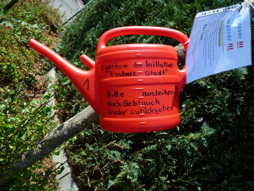 So ist die Bürgerstiftung und ihre ehrenamtlichen Helfer im Projekt „essbare Stadt Warendorf“ auf die Idee gekommen Gießkannen zu stiften um dem Baum das Leben zu retten und der Innenstadt das Grün und gesunde und kühlere Luft zu erhalten. Wer also eine rote Gießkanne an einem Baum entdeckt, der verstehe die Kanne bitte als eine Bitte des Baums um eine freundliche Spende von Wasser. Jeder Bürger, der bereit und in der Lage ist, dem Baum eine Kanne Wasser zu spenden, nehme diese rote Kanne und gieße sie an den Baum. Er wird es mit Sauerstoff und kühlerer Luft danken. Und im nächsten Jahr erstrahlt er in neuem und frischem Grün, statt zu sterben. Übrigens: es wäre wunderbar, wenn die Gießkanne nach der Wasserspende wieder an ihren Platz gehängt wird, um dem Baum weitere Spenden zu ermöglichen!