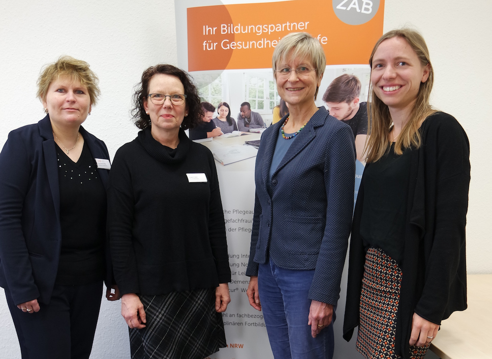 Stellten gemeinsam die neue Basisqualifizierung zum Alltagsbegleiter an der ZAB GmbH Gütersloh vor: V.l.n.r. Eva Ortmann-Welp und Angela Prattke (ZAB GmbH), Helga Reinisch und Kristin Rolke (Regionalbüro Alter, Pflege und Demenz OWL).