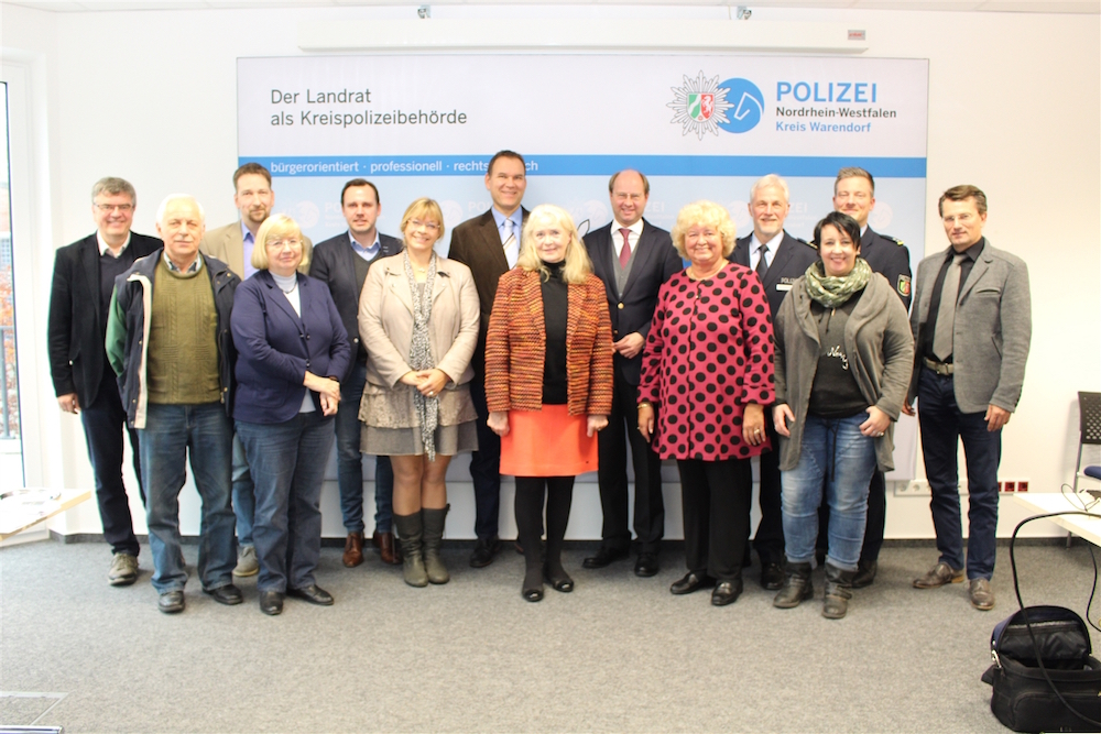 Bis September diesen Jahres sind die Wohnungseinbruchszahlen im Kreis Warendorf deutlich zurückgegangen. Landrat Dr. Olaf Gericke, gleichzeitig Leiter der Kreispolizeibehörde, berichtete dem Polizeibeirat in der Herbstsitzung von positiven Kriminalitätsentwicklungen. Nach den ersten drei Quartalen zog Gericke eine positive Bilanz. Die Fallzahlen insgesamt gingen von 11.653 auf 10.083 zurück. Die Kriminalitätshäufigkeitszahl sank weiter und lag mit 566 Punkten niedriger als 2016 bei 3.634. Im Münsterland hat der Kreis Warendorf damit die niedrigste Kriminalitätsbelastung. Gleichzeitig lag die Aufklärungsquote über 50 %. Mehr als die Hälfte der Straftaten konnte aufgeklärt werden, auch dies ist ein Spitzenwert im Münsterland. „Es sind erfreuliche Zahlen“, so Dr. Gericke, „besonders beim Wohnungseinbruch“. Von Januar bis September 2017 wurden 315 Wohnungseinbrüche gezählt, gegenüber 701 Fälle in 2016. Allerdings sei trotz des Rückgangs der Fälle die Aufklärungsquote zurückgegangen. Die Entwicklung führten Dr. Gericke und Polizeidirektor Christoph Ingenohl auch auf die Maßnahmen der Polizei zurück. Die Präsenzkonzepte, eine deutlichere Unterstützung der Verkehrsüberwachung durch den Kreis Warendorf und damit verstärkte Bekämpfung des Wohnungseinbruchs durch frei werdende Kräfte haben Wirkung gezeigt. Außerdem waren die Aktionen zur Prävention erfolgreich. Ingenohl betonte, dass die Hälfte der bekanntgewordenen Taten im Versuchsstadium steckenblieb. Abzuwarten bleibt jedoch die Entwicklung in den verbleibenden Wochen des Jahres. Wie in früheren Jahren steigen die Einbruchszahlen in der dunklen Jahreszeit wieder an, derzeit aber längst nicht auf dem hohen Niveau aus 2015 oder 2016. In einem weiteren Tagesordnungspunkt erläuterte Kriminalhauptkommissarin Carina Cajo aktuelle Projekte, darunter „Senioren auf ZAK“. Die Buchstaben stehen für „Zukunft-Alter-Kriminalität“ und machen die Zielrichtung deutlich. Die Idee ist, ehrenamtliche Freiwillige im Seniorenalter zu gewinnen, die nach einer intensiven Schulung durch die Polizei ältere Menschen über Kriminalitätsphänomene informieren und Tipps geben, wie sie sich vor kriminellen Machenschaften schützen können. Das Projekt startete seinerzeit in Oelde und wurde inzwischen erfolgreich auf Ahlen ausgeweitet. Ziel ist, das Projekt weiterzuführen, die Kriminalprävention auf mehr Schultern zu verteilen, um auf diese Weise mehr Menschen mit den Inhalten zu erreichen. Die Mitglieder des Polizeibeirates informierten sich über die Arbeit der Polizei.