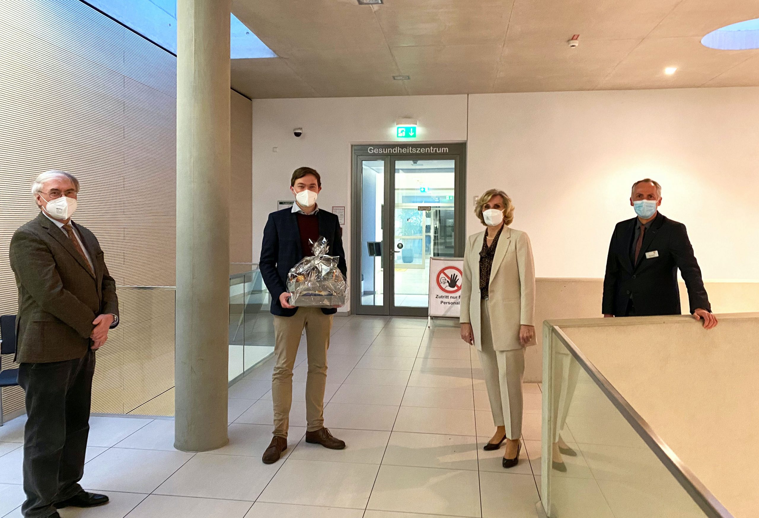 Antrittsbesuch: Kurator Rainer Budde (im Bild links), seine Stellvertreterin Doris Kaiser und Vorstandsvorsitzender Peter Goerdeler begrüßen Warendorf’s neuen Bürgermeister Peter Horstmann (2. v. l.). (Foto: Josephs Hospital)