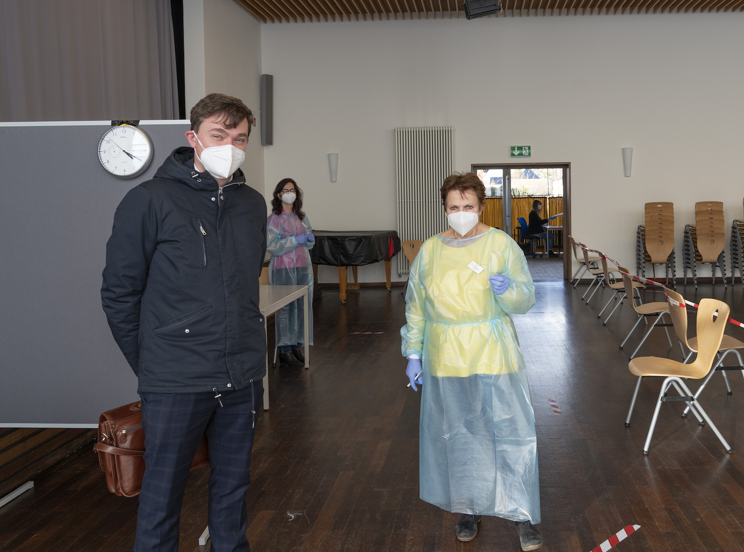 Bürgermeister Peter Horstmann machte sich vor Ort ein Bild und dankte den Medizinern und dem Organisationsteam aus dem Sachgebiet Soziales der Stadt Warendorf. „Es ist gut, dass diese zusätzliche Impfmöglichkeit für unsere Lehrkräfte im Primarbereich und die ErzieherInnen geschaffen werden konnte. Durch die Rückkehr zum Präsenzunterricht und die Öffnung der Kitas ist diese Personengruppe einem erhöhten Risiko ausgesetzt.“